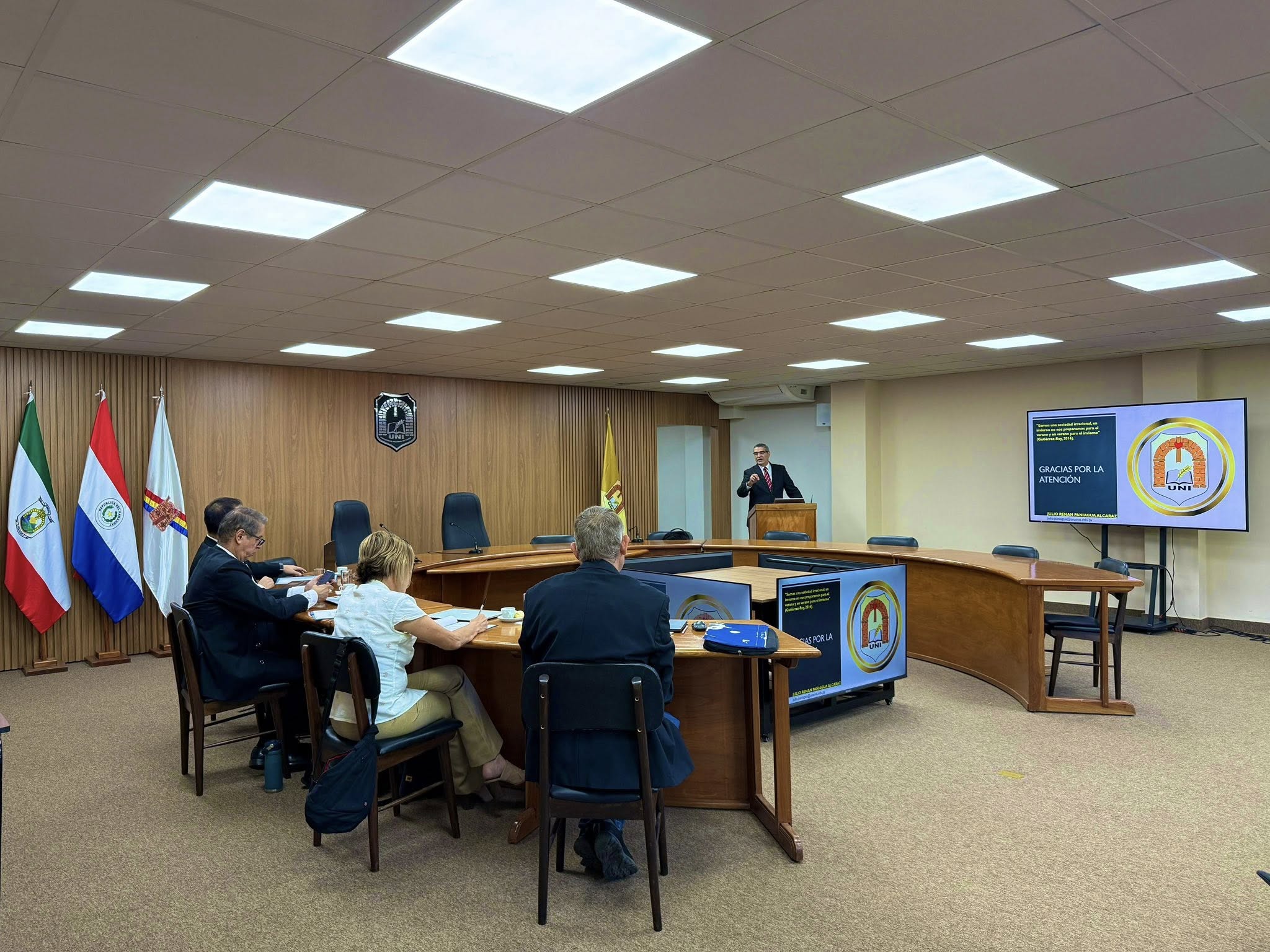 En la Sala del Consejo Superior Universitario de la Universidad Nacional de Itapúa (UNI) se desarrolló la Defensa de Tesis del Programa Doctorado en Gestión Ambiental, el día sábado 21 de febrero.
