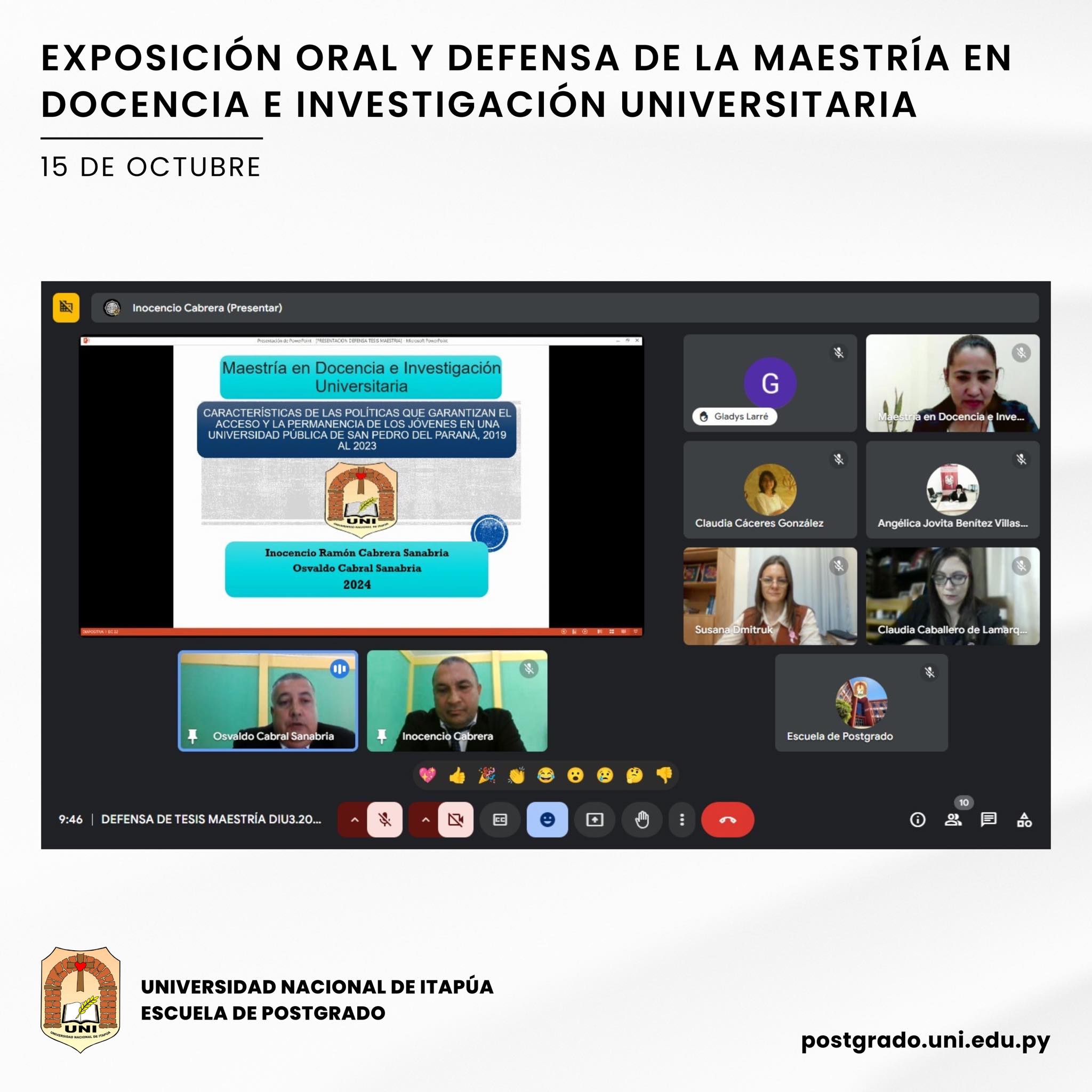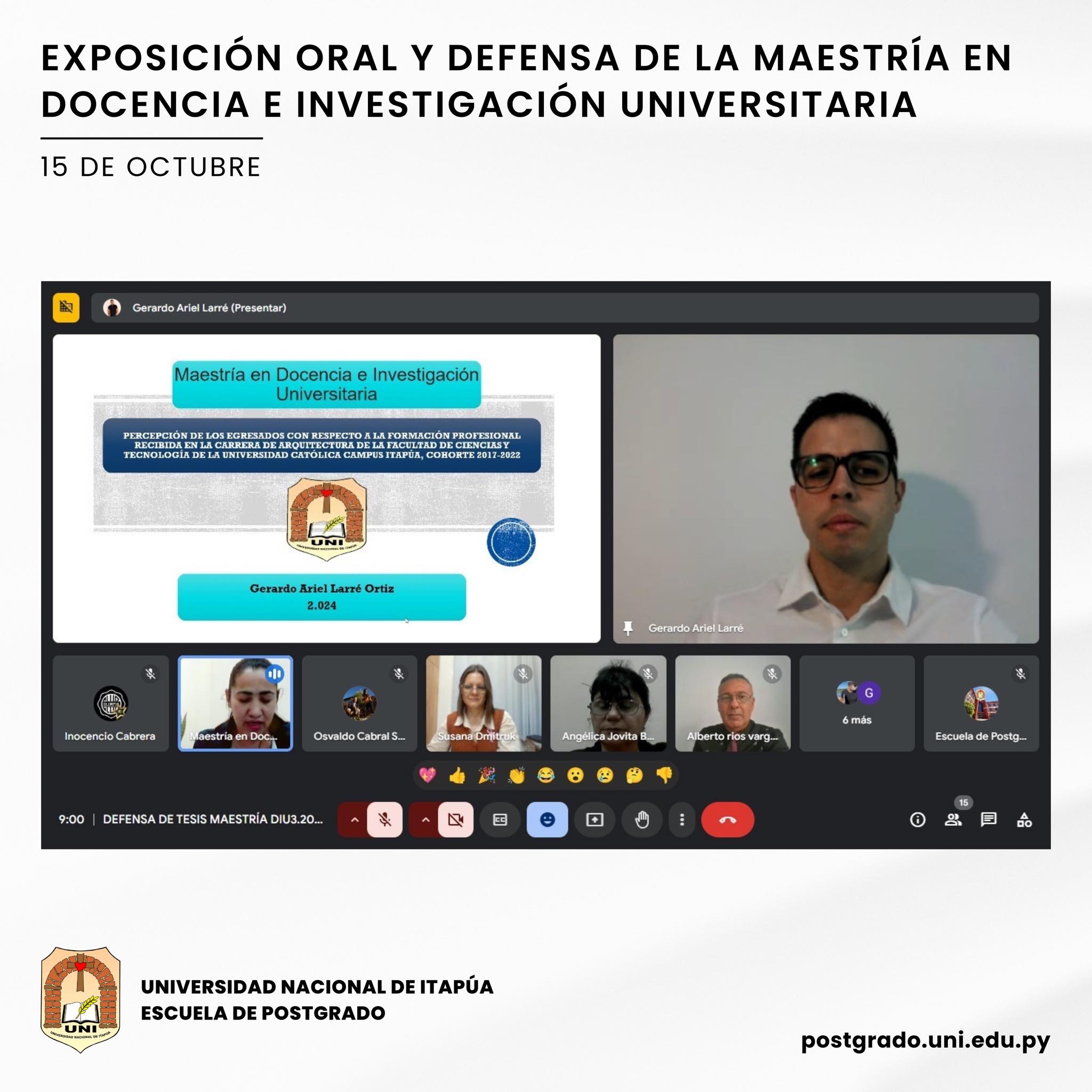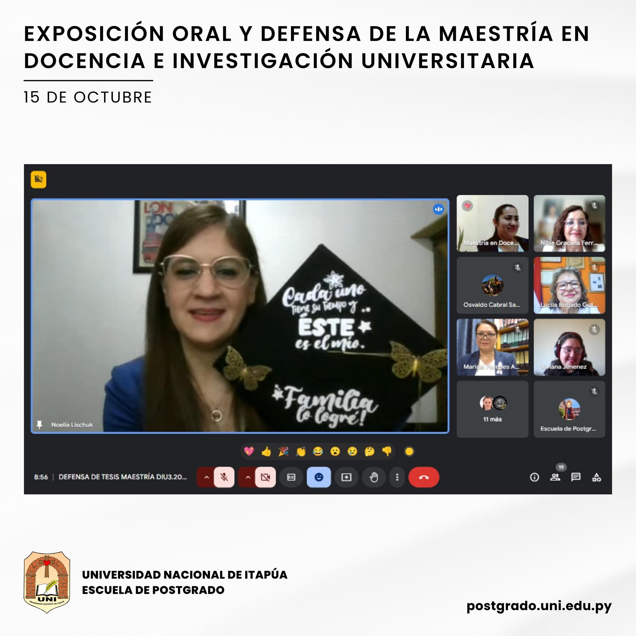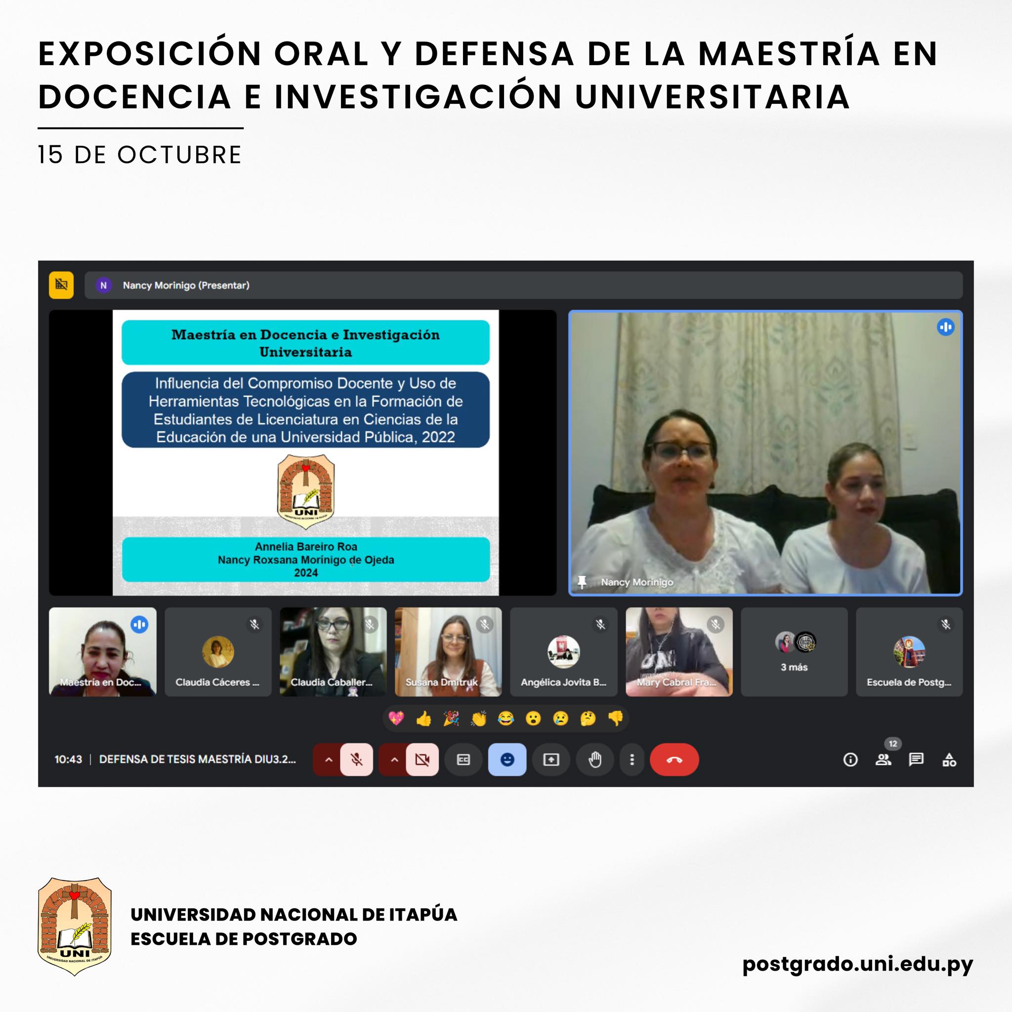 En la Escuela de Postgrado de la Universidad Nacional de Itapúa (UNI) se desarrolló la Defensa de Tesis del Programa Maestría en Docencia e Investigación Universitaria, el día martes 15 de octubre.