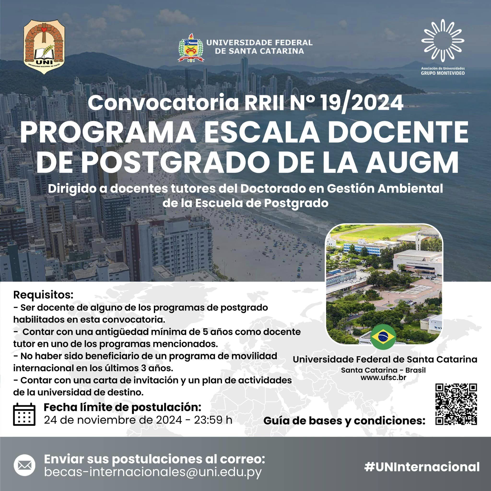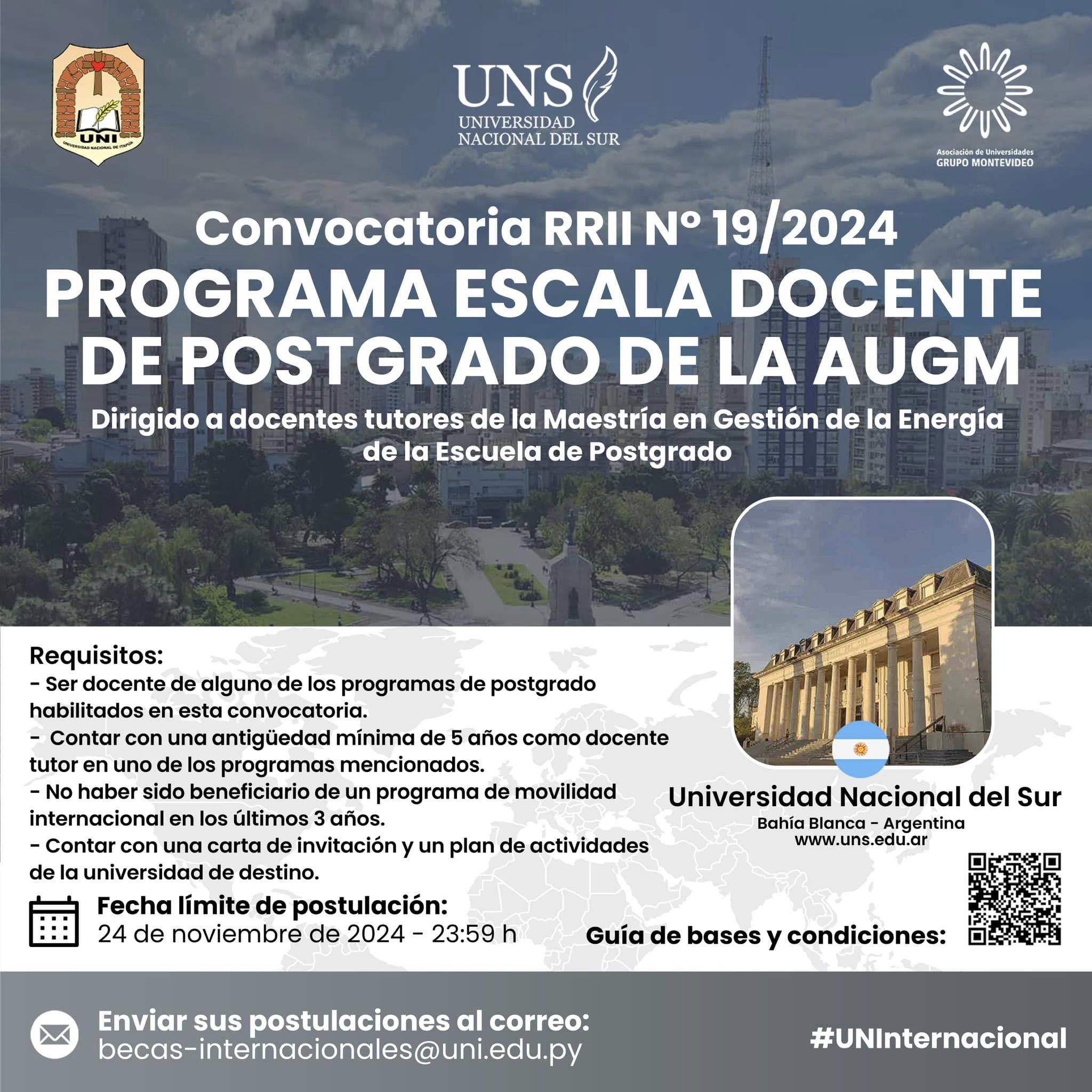 20 de noviembre de 2024 2024-11-20 11:29Apertura del PROGRAMA ESCALA DOCENTE A NIVEL DE POSTGRADO – AUGM 2025