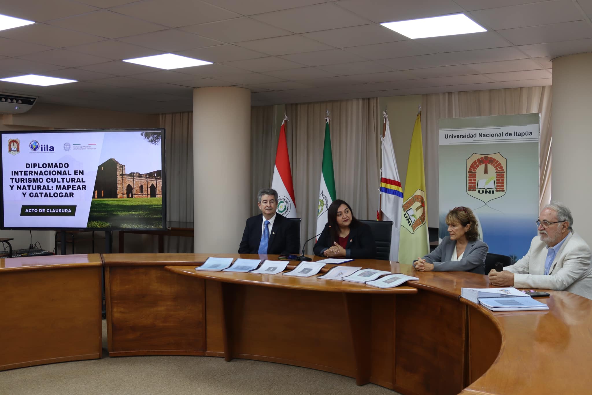 El día sábado 14 de septiembre en el Consejo Supeior Universitario de la Universidad Nacional de Itapúa, se llevó a cabo el acto de Clausura del Diplomado Internacional en Turismo Cultural y Natural: Mapear y Catalogar, con la participación de los instructores, los profesores Dra. Cecilia Santinelli y el Dr. Andrea Papi, representantes de la Organización Internacional Ítalo Latinoamericana (IILA) y coordinadores de la Escuela de Postgrado de la UNI.