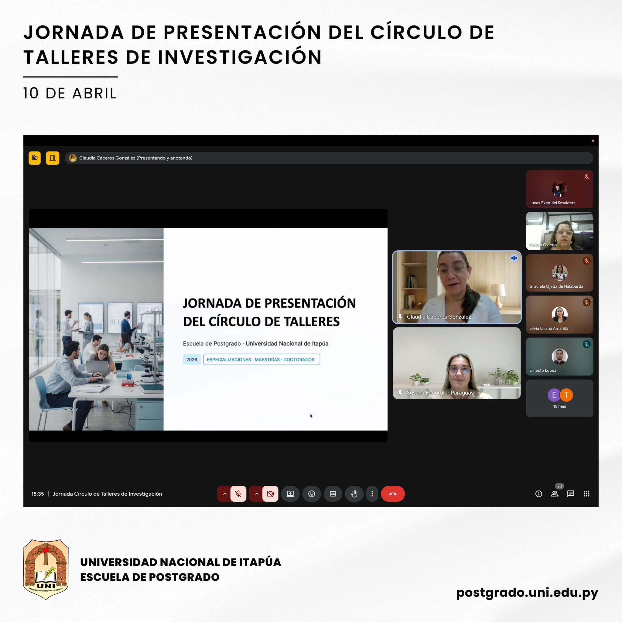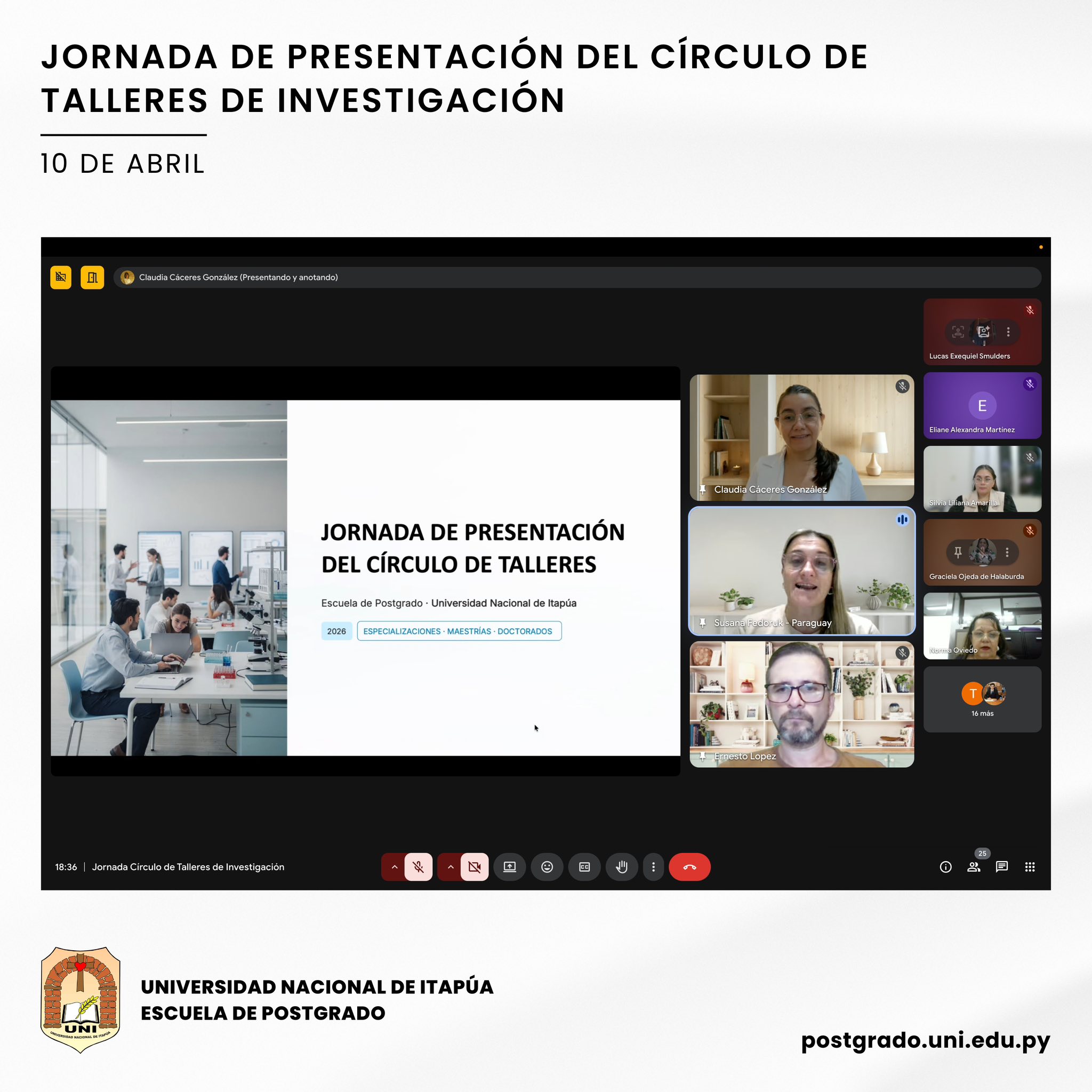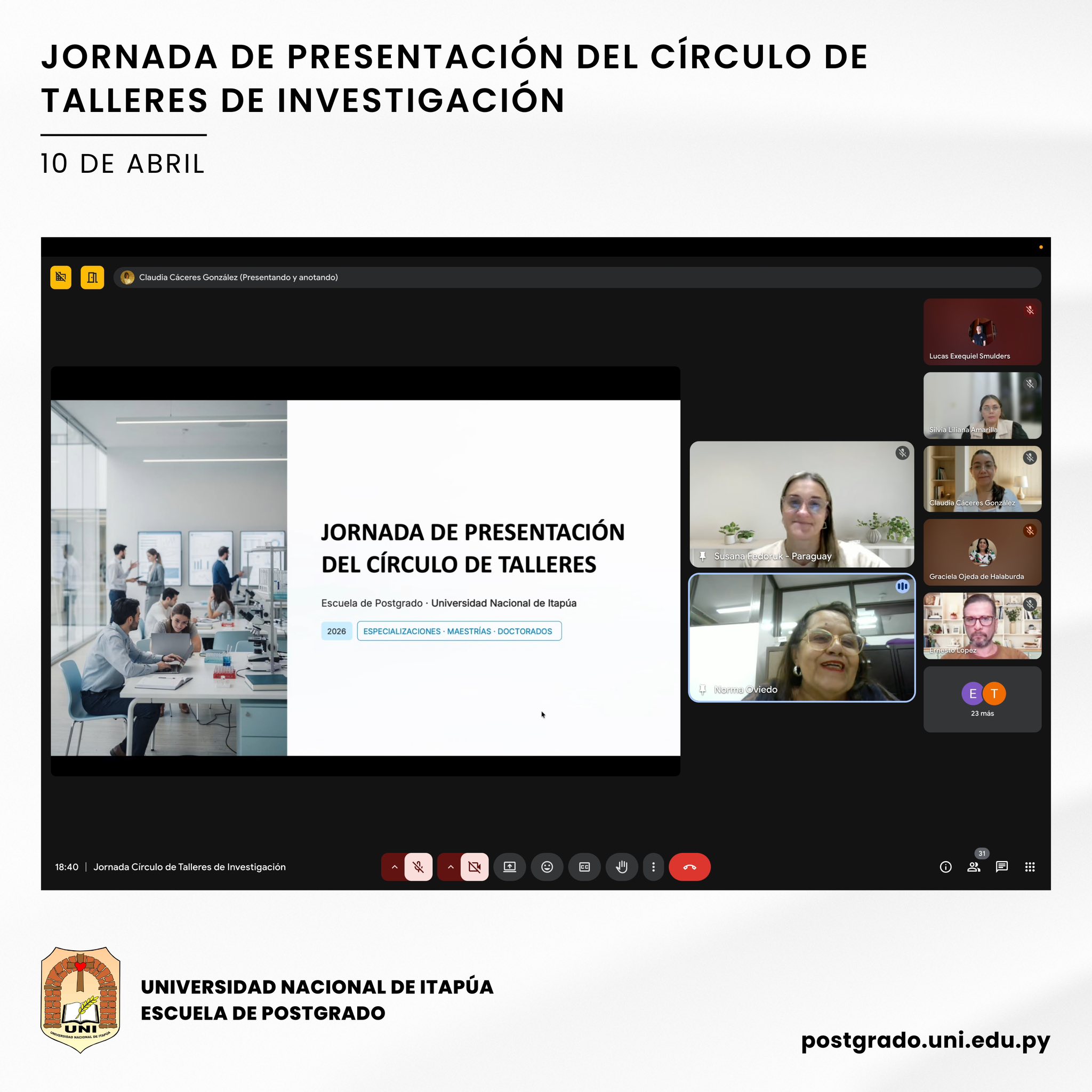 El pasado viernes 10 de abril, en la Escuela de Postgrado de la Universidad Nacional de Itapúa, se llevó a cabo este importante encuentro donde se dieron a conocer las actividades previstas para el primer y segundo semestre del año académico 2026 en el área de investigación.