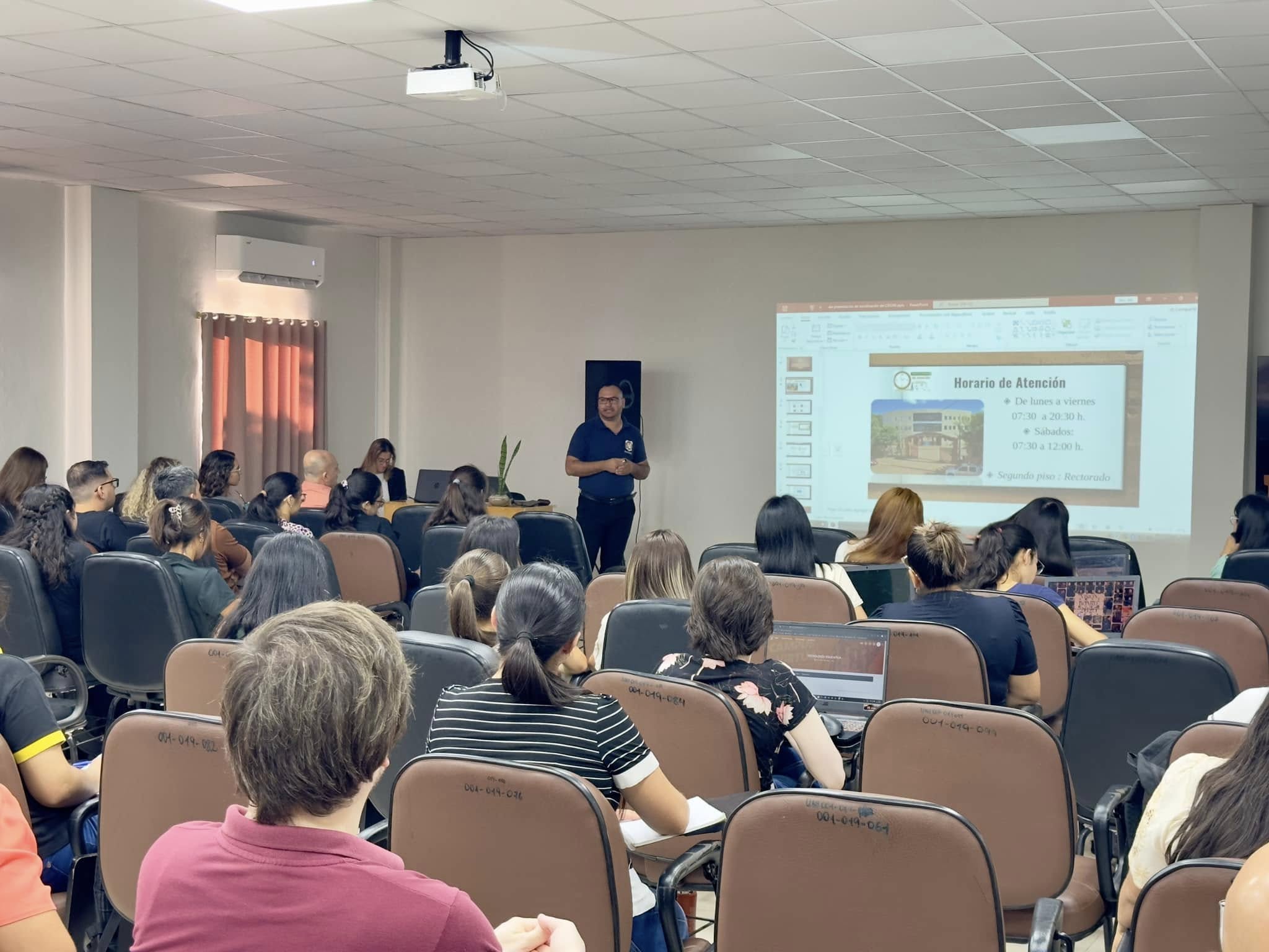 Dicha inducción estuvo a cargo del Ing. Wilson Barrios (Responsable del Sistema Académico Universitario), el Lic. Ricardo Gómez (Responsable del CRIUNI), la Prof. Mgtr. Rosa Arapayú (Administradora de la Escuela de Postgrado), la Prof. Ing. Com. María Giménez (Aseguramiento de la Calidad de la Escuela de Postgrado) y la Prof. Mgtr. Susana Dmitruk (Directora Académica de la Escuela de Postgrado).
