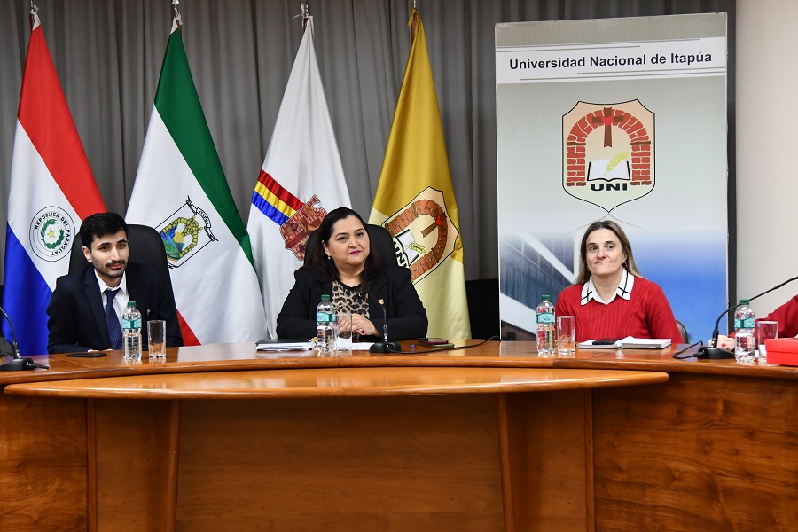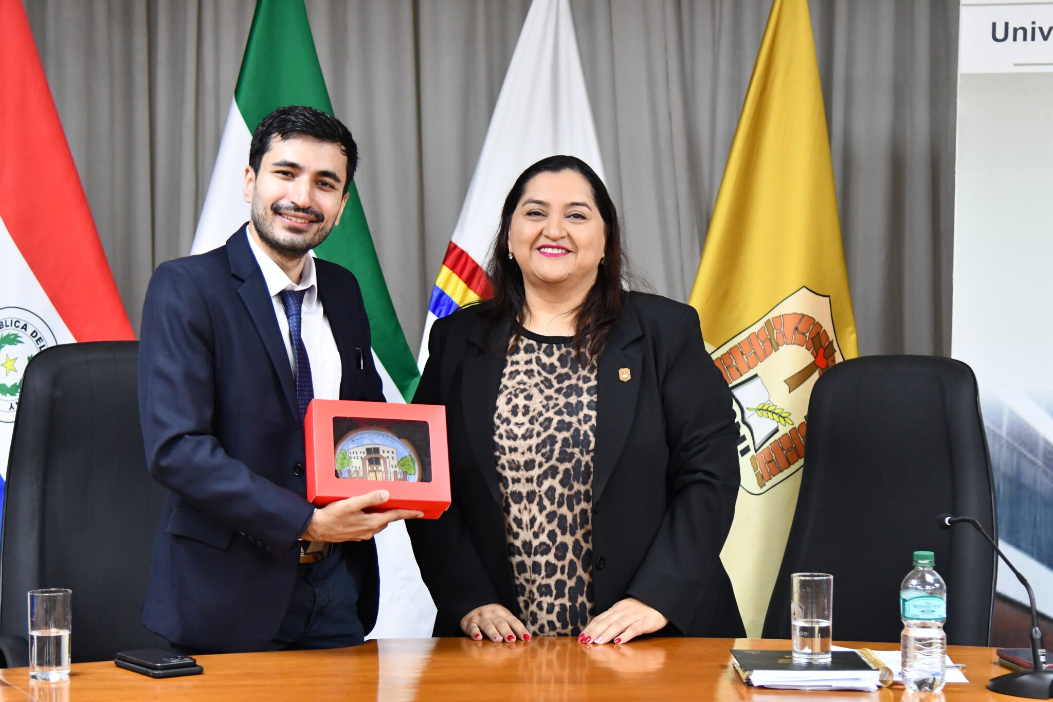 El encuentro se desarrolló en la Sala del Consejo Superior Universitario, donde fue recibido por autoridades de la UNI, encabezadas por la Dra. Nelly Monges de Insfrán, vicerrectora en ejercicio del rectorado, junto a decanos de distintas facultades.
